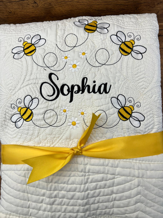 Bumble Bee Quilt: Personalized Matelassé Embroidered Cotton Quilt