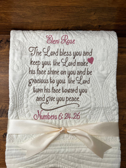 Custom Embroidered Quilt: Biblical Verse, Matelassé Design