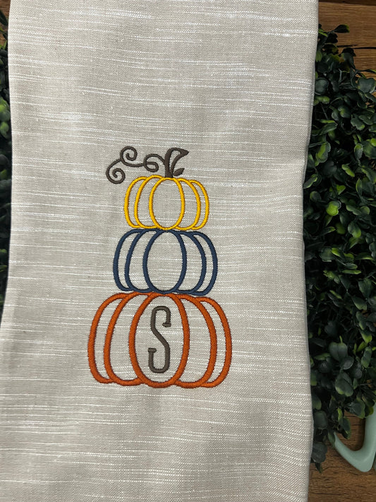 Custom Embroidered Linen Towel: Stacked Pumpkin Fall Decor
