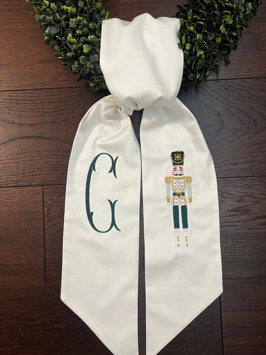 Christmas Nutcracker Wreath Sash: Personalized Sateen Decor