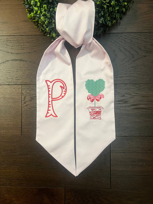 Chinoiserie Wreath Sash: Custom Sateen Monogram