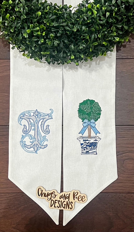 Chinoiserie Wreath Sash: Personalized Door Decor, Cotton Sateen or Linen