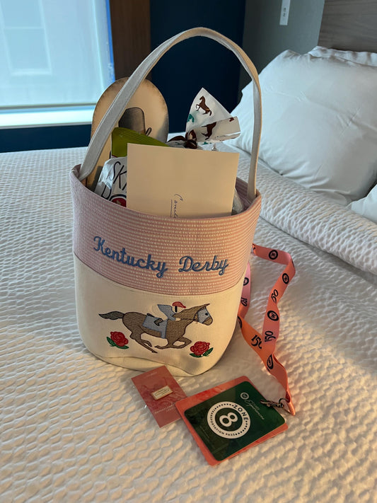 Kentucky Derby Seersucker Tote: Embroidered Horse Decor