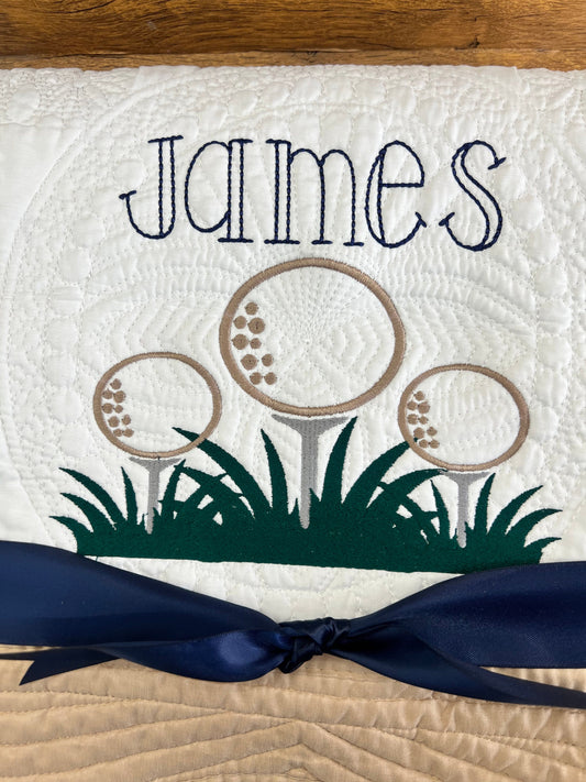 Personalized Golf Quilt: Matelassé Golf Decor Gift