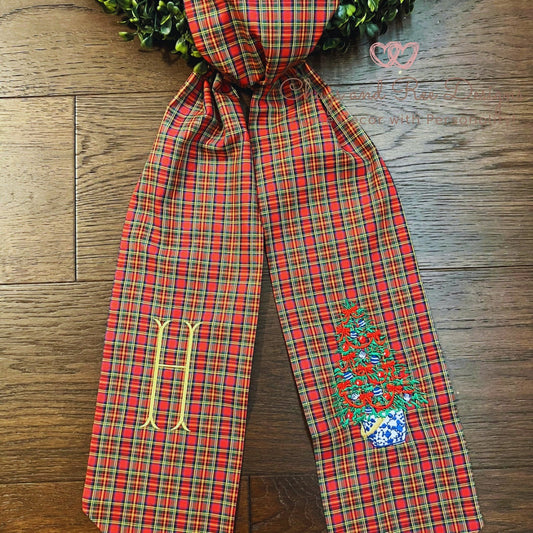 Personalized Christmas Wreath Sash: Chinoiserie Sateen Decor