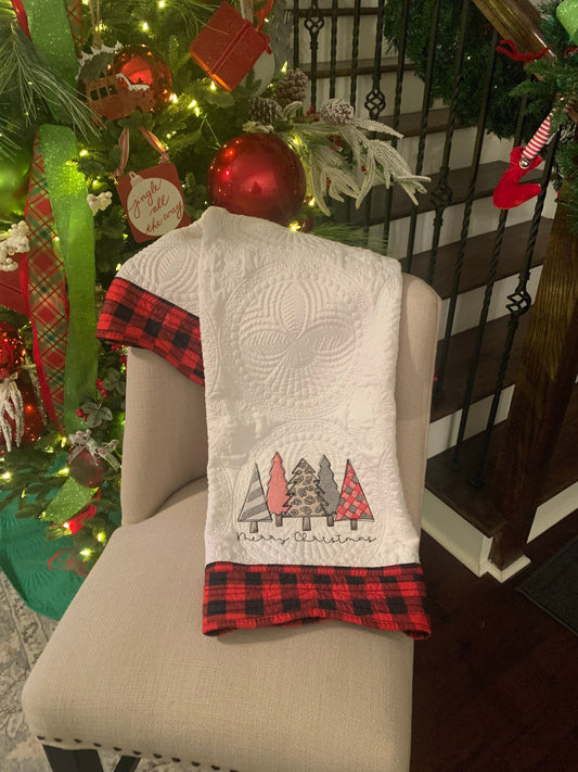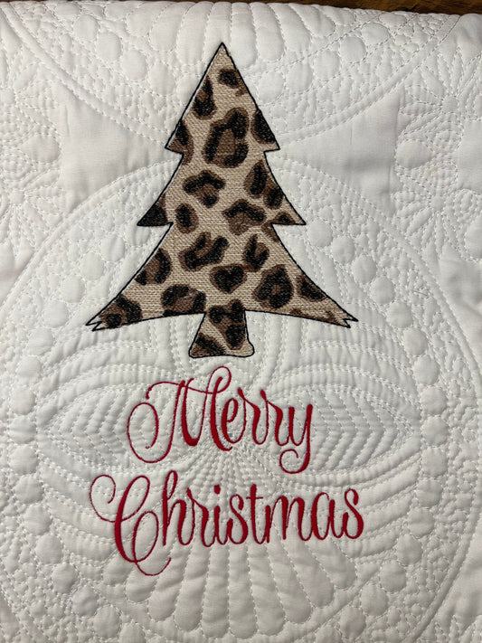 Personalized Christmas Quilt: Embroidered Cheetah Tree, Cotton Matelassé