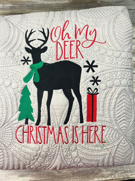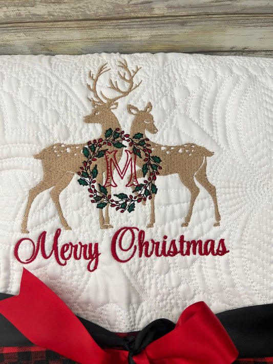 Embroidered Deer Christmas Quilt: Personalized Holiday Decor