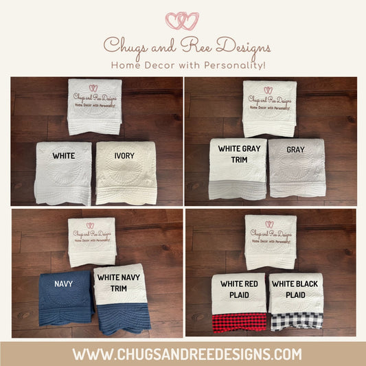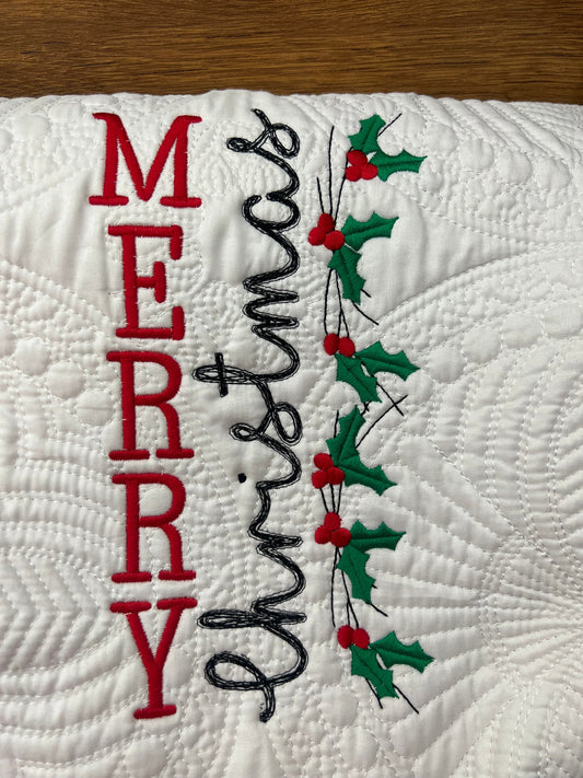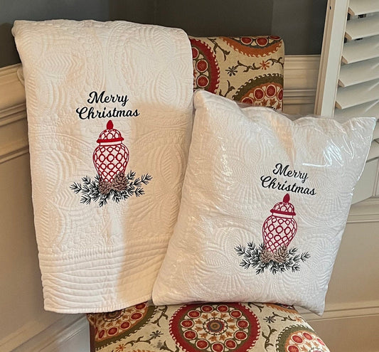Personalized Christmas Quilt: Embroidered Matelassé Cotton Holiday Quilt
