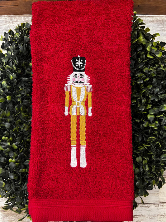 Embroidered Nutcracker Christmas Hand Towel: Holiday Decor