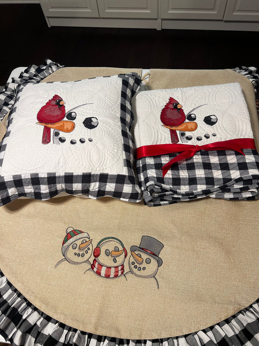 Embroidered Christmas Quilt: Snowman Cardinal, Buffalo Plaid, Personalized