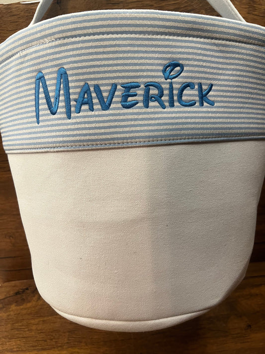 Monogrammed Seersucker Easter Basket: Embroidered Canvas Tote