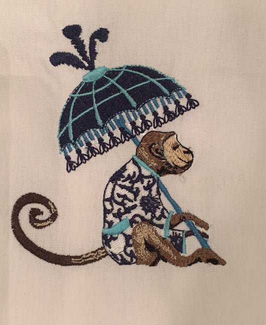 Embroidered Chinoiserie Monkey Kitchen Towel: Spring Home Decor