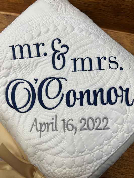 Personalized Wedding Quilt | Monogrammed Wedding Gift | Anniversary Gift| Custom wedding gift | Custom Quilt | Matelassé