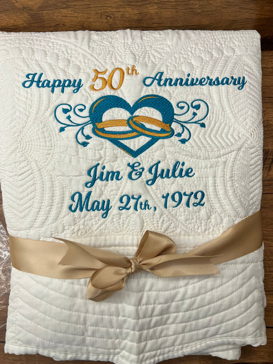 Personalized 50th Anniversary Quilt | Monogrammed Wedding Gift | Anniversary Gift |