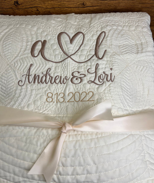 Personalized Wedding Quilt | Monogrammed Wedding Gift | Anniversary Gift | Custom Wedding Gift | Custom Quilt | Matelassé