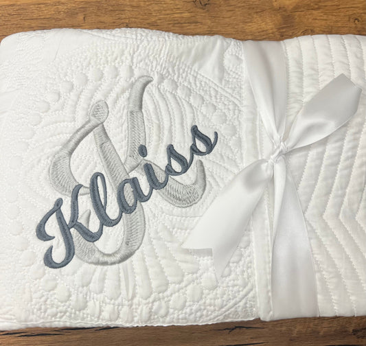 Custom Embroidered Monogram Quilt: Cotton Matelassé Design