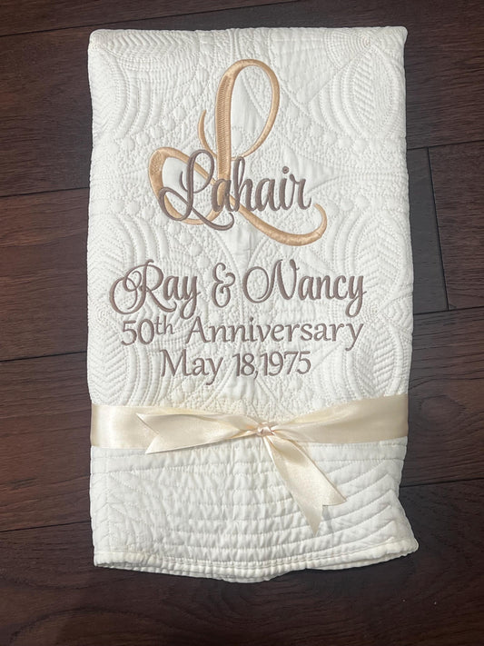 Personalized 50th Anniversary Quilt | Monogrammed Wedding Gift | Anniversary Gift | Custom Gift | Custom Quilt | Matelassé